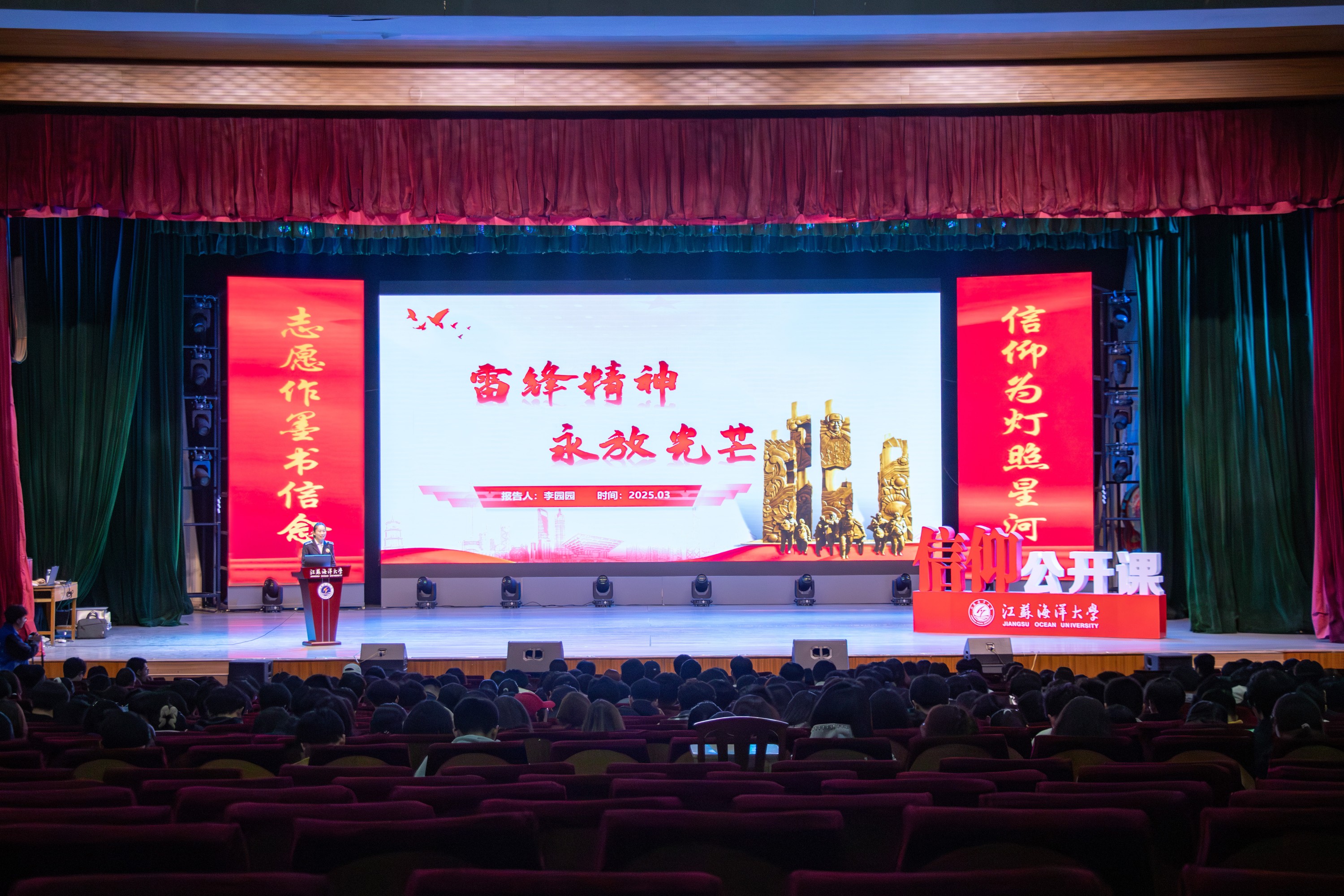 近日,江蘇海洋大學(xué)蒼梧校區(qū)大禮堂舉行了一場以志愿服務(wù)為主題的“信仰公開課”,現(xiàn)場匯聚了各學(xué)院800余名師生代表。第六代“雷鋒車”手李園園受邀參加此次活動并上臺發(fā)言,和眾多青年志愿者一起講述親身經(jīng)歷,傳播雷鋒精神的火種。