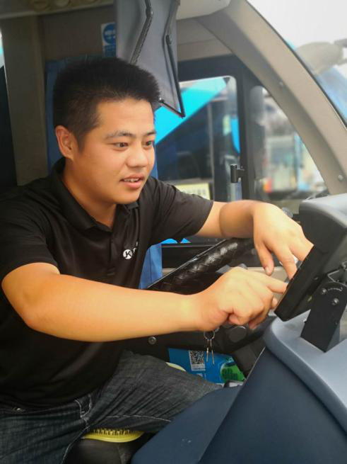8月19日下午,市民卡公司兩位工作人員前往新華公交總站,對(duì)停在場(chǎng)站內(nèi)的車輛進(jìn)行配置。連日的高溫天,車廂內(nèi)的溫度高達(dá)40度,但他們的工作熱情絲毫未減,兩人分工合作,逐輛車排查、給車載機(jī)配置新的服務(wù)器,接入到新的調(diào)度系統(tǒng),截止夜晚,完成了場(chǎng)站內(nèi)485輛車的配置工作。