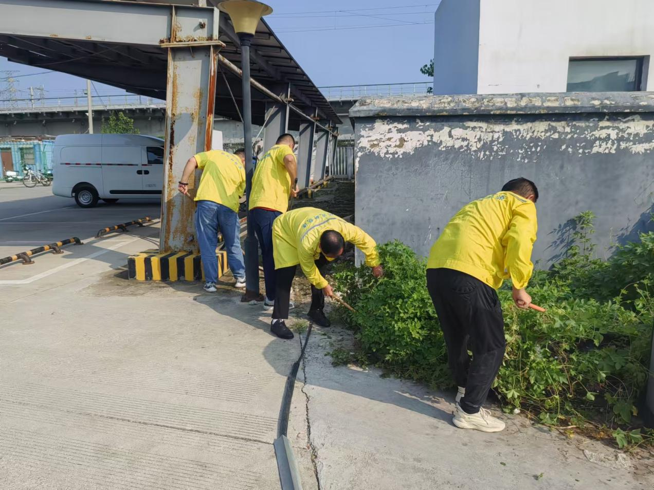 活動由班長領(lǐng)隊,提前將準備好的除草工具,如鐵鋤、鐮刀、鏟子等進入場地。大家齊心協(xié)力開始對充電樁周邊的雜草進行了全面的清理。有的用鏟子鏟除雜草,有的用鐮刀割斷較高的草莖,有的將鏟除的雜草和垃圾帶離現(xiàn)場集中清理。