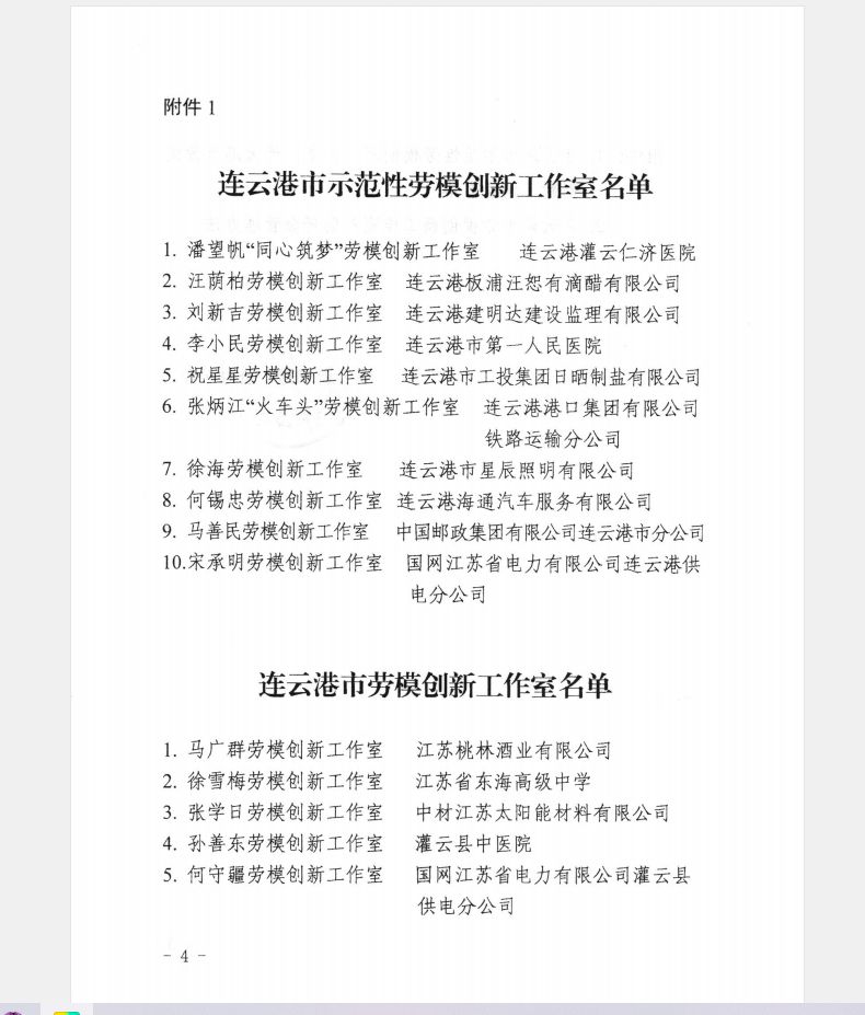 由于勞模何錫忠在汽車噴涂行業(yè)中取得的優(yōu)異成績,2022年6月份,經(jīng)基層工會申報、成果評審等程序,“何錫忠勞模創(chuàng)新工作室”被連云港市總工會命名為“連云港市示范性勞模創(chuàng)新工作室”。