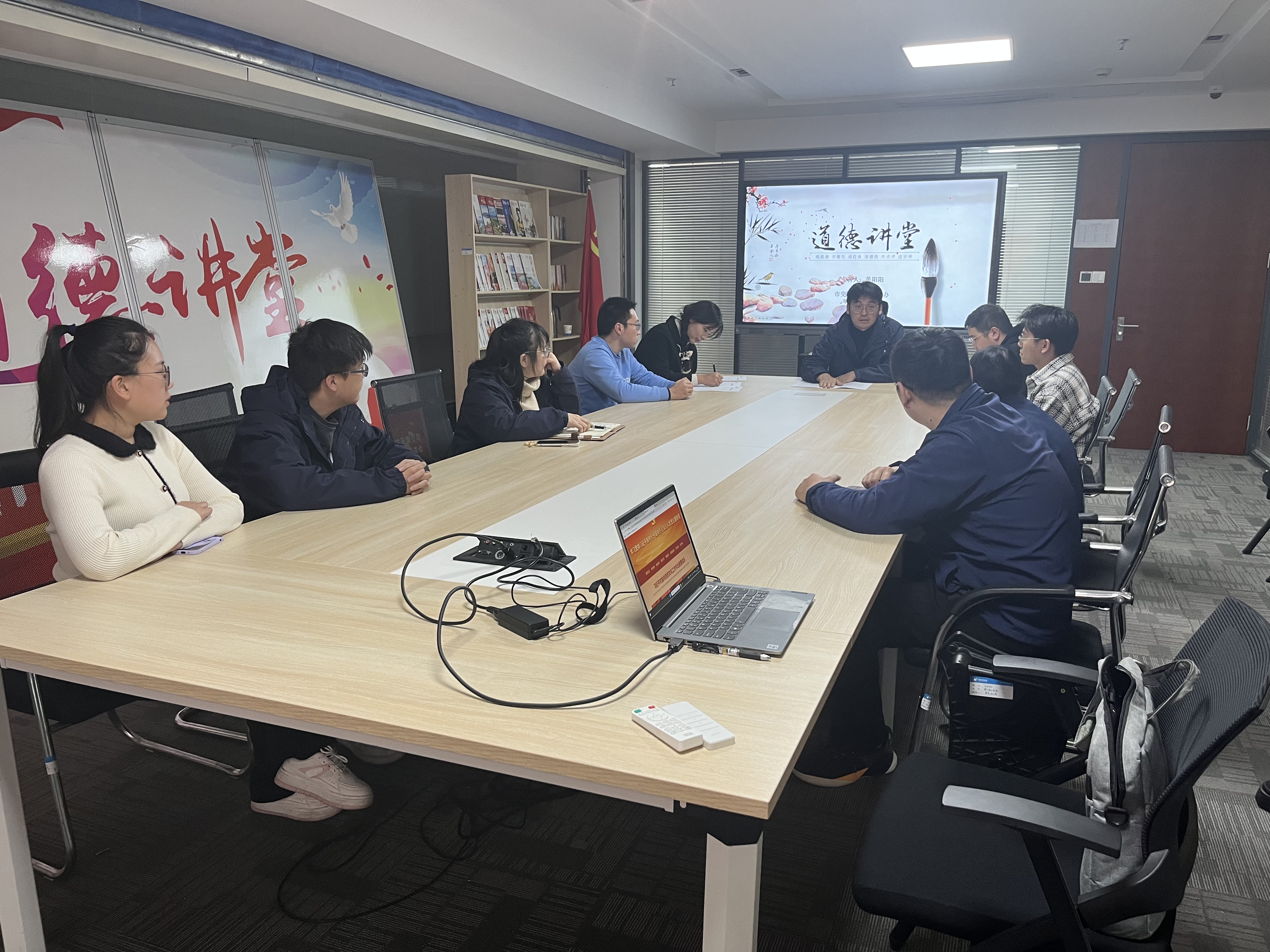 本次道德講堂圍繞“唱歌曲、學模范、誦經(jīng)典、談感悟、作點評、送吉祥”六個環(huán)節(jié)有序進行。唱歌曲環(huán)節(jié),職工代表領(lǐng)唱,全體職工起立齊聲高唱歌曲《公民道德歌》,用鏗鏘有力的歌聲展現(xiàn)出積極向上的精神風貌,用真誠與愛傳播道德文明禮儀。學模范環(huán)節(jié),大家共同觀看“清風常在”小視頻,道德模范的身影在每一位員工心中埋下了時刻牢記道德、文明底線的種子。誦經(jīng)典環(huán)節(jié),一篇《愛蓮說》使員工更好地感悟廉潔理念、堅守本心的重要所在。“談感悟、作點評”環(huán)節(jié),職工暢談好人好事感悟,愛崗敬業(yè)點評動人心弦。在最后的“送吉祥”環(huán)節(jié),大家互相送上誠摯的祝福,活動在歡聲笑語中結(jié)束。