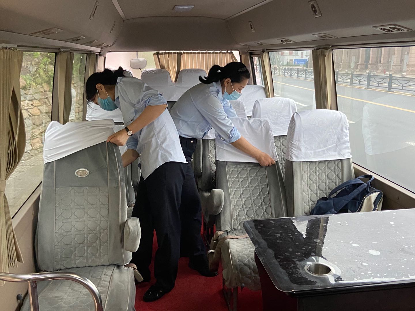 烈日似火,大地就像大蒸籠一樣,熱得使人喘不過氣來。炎炎烈日人人避之不及,城市動車連云站的姑娘們卻毫不畏懼,她們利用自己休息的時間幫助城市動車通勤車的曹師傅一起打掃車內(nèi)衛(wèi)生,清掃車內(nèi)地面,擦拭車窗玻璃,將車上座位套一個個取下,仔細清洗干凈后再一個個套上去。曹師傅感謝姑娘們的幫忙,姑娘們笑著說“大家每日上班都要乘車近3個小時,干凈衛(wèi)生的車內(nèi)環(huán)境,既能讓大家有一個舒適的乘車感受,又能讓大家每天都能有個好心情,大家以良好的精神狀態(tài)投入到一天的工作中去?!弊猿鞘袆榆囬_通以來,城市動車的工作人員每日早上五點乘坐通勤車前往連云站,晚上等動車結(jié)束后再乘坐通勤車返回海州,如果說通勤車是工作人員臨時的家,每個座位就是大家的臨時床位,大家每日早出晚歸只能利用乘車這段時間給自己補補覺。