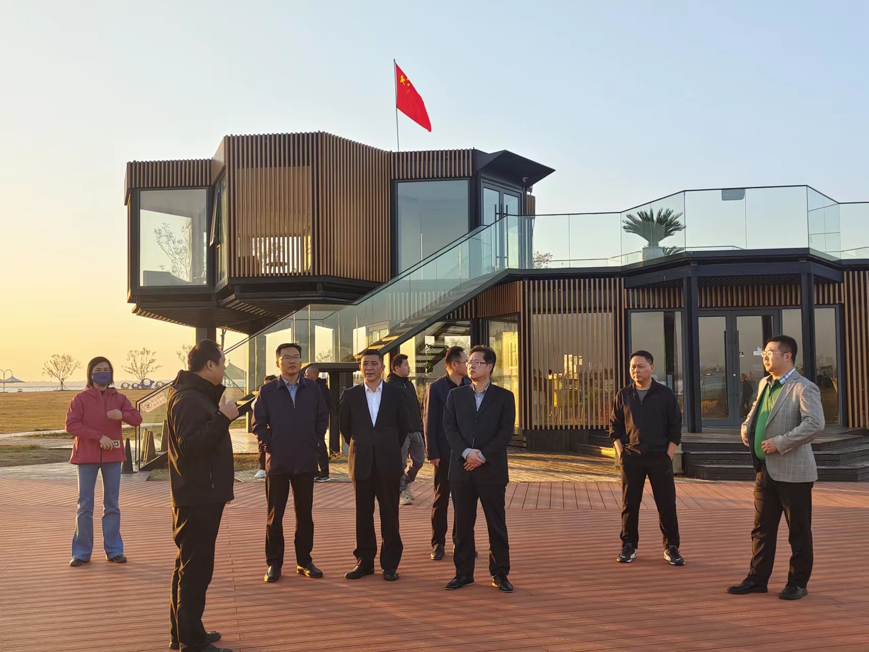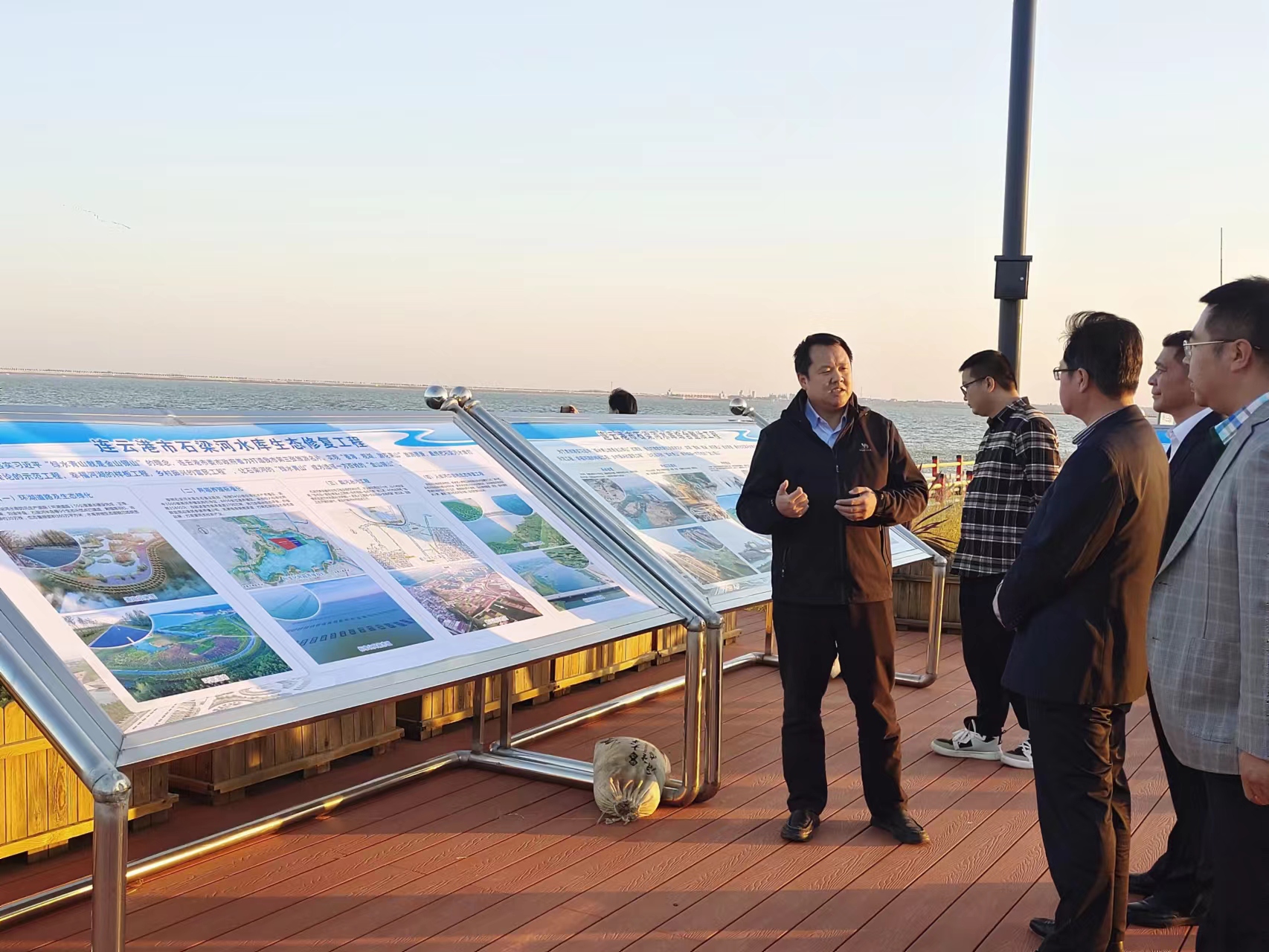2023年11月8日丹陽市人大一行到石梁河水庫生態(tài)修復(fù)工程漁人碼頭示范點觀摩調(diào)研石梁河水庫生態(tài)修復(fù)工程。贛榆區(qū)黨委及石梁河水庫生態(tài)修復(fù)工程建設(shè)處人員陪同調(diào)研。