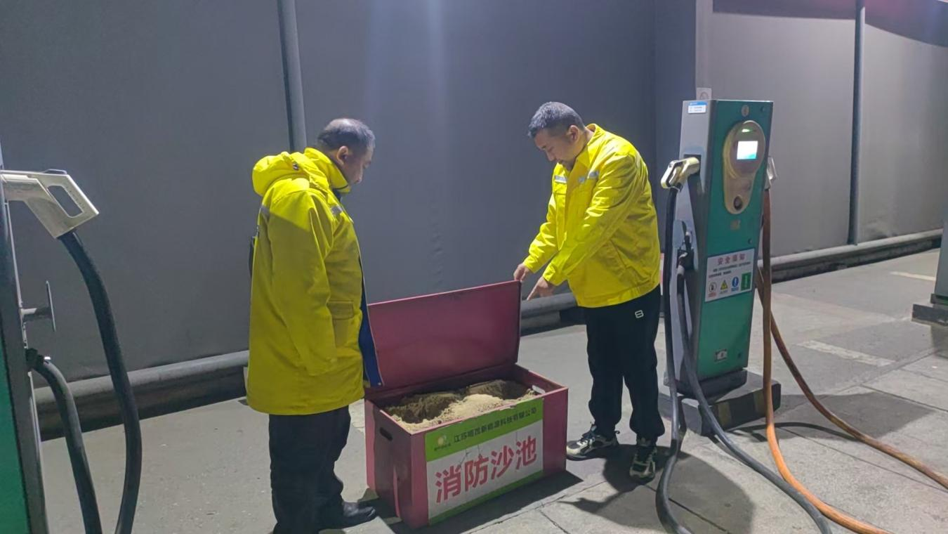 本次巡查以“預(yù)防電氣火災(zāi)”為核心目標(biāo),班組人員嚴(yán)格依據(jù)消防管理標(biāo)準(zhǔn),逐項(xiàng)檢查滅火器壓力指數(shù)、保險(xiǎn)銷(xiāo)完好性及有效期標(biāo)識(shí),確保滅火器100%處于可用狀態(tài);同時(shí)核查消防沙池容量是否符合要求、消防鏟具是否存在銹蝕或變形等情況,并對(duì)發(fā)現(xiàn)缺損的設(shè)施進(jìn)行詳細(xì)記錄,明確整改時(shí)限。針對(duì)充電場(chǎng)站電氣火災(zāi)風(fēng)險(xiǎn)較高的特點(diǎn),班組著重檢查充電槍線絕緣層是否老化開(kāi)裂、充電樁外殼有無(wú)過(guò)熱痕跡及線路是否存在磨損現(xiàn)象,并要求現(xiàn)場(chǎng)工作人員嚴(yán)格執(zhí)行“動(dòng)態(tài)監(jiān)控+即時(shí)上報(bào)”機(jī)制,一旦發(fā)現(xiàn)異常立即停用相關(guān)設(shè)備,并第一時(shí)間通知技術(shù)組處理。