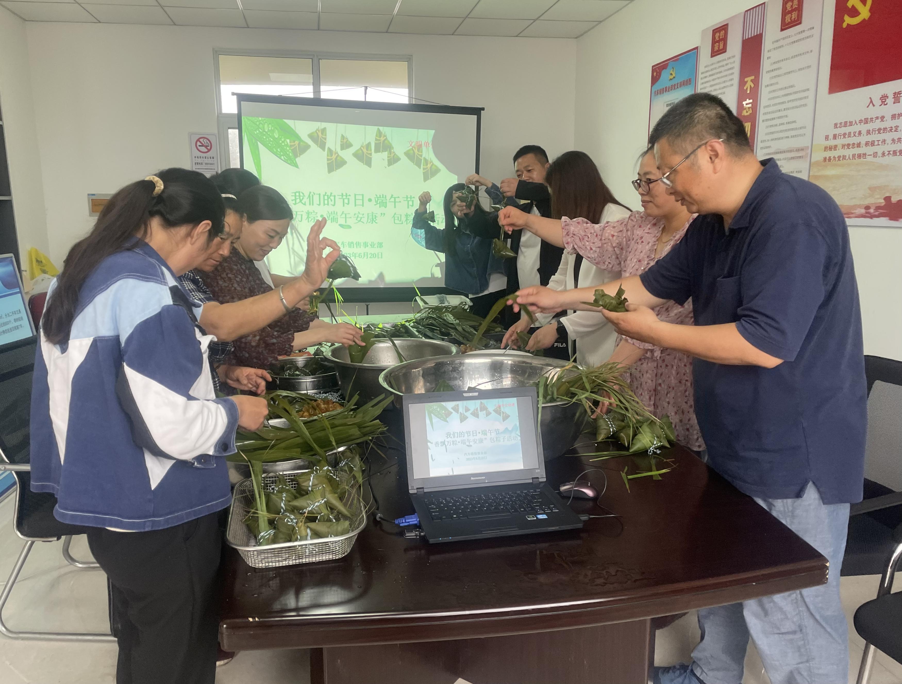 端午近,粽飄香,6月20日上午,在端午佳節(jié)來臨之際,汽車銷售事業(yè)部積極組織開展“香飄萬粽?端午安康”包粽子活動(dòng),各部門職工積極響應(yīng),共10名職工參加活動(dòng)。