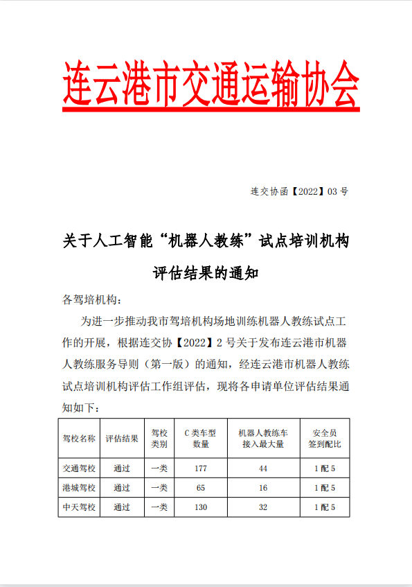近日,交培公司駕培事業(yè)部順利通過機器人教練試點培訓(xùn)試機構(gòu)評估工作,有效促進機器人和人工智能技術(shù)與教育教學(xué)深度融合。