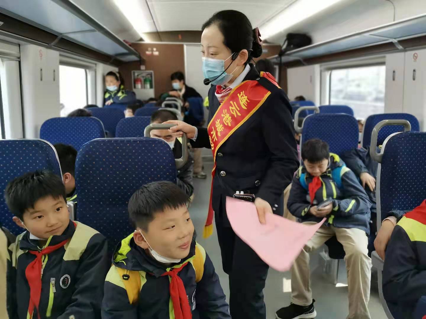 近日,墟溝小學(xué)的師生們整裝待發(fā),來(lái)到城市動(dòng)車(chē)墟溝站,體驗(yàn)城市動(dòng)車(chē)舒適快捷。城市動(dòng)車(chē)站務(wù)員們熱情接待了他們,站務(wù)員給同學(xué)們介紹了墟溝站的概況,尤其是墟溝站的頂棚設(shè)計(jì)采用起伏多變的波浪造型,它象征著“星辰大?!保w現(xiàn)港城特色的海洋文化。同學(xué)們?cè)谠屡_(tái)等候列車(chē)時(shí),看見(jiàn)列車(chē)駛?cè)胝九_(tái),同學(xué)們沸騰了,大聲說(shuō)到:“美猴王踏著祥云向我們飛來(lái)了?!痹谲?chē)上,站務(wù)員們?yōu)橥瑢W(xué)們講解了城市動(dòng)車(chē)的概況、乘車(chē)禁止攜帶的危險(xiǎn)品及高鐵、動(dòng)車(chē)、普速列車(chē)的區(qū)別。高鐵是以G開(kāi)頭的車(chē)次,動(dòng)車(chē)是以D開(kāi)頭的車(chē)次;高鐵時(shí)速是在300公里以上,動(dòng)車(chē)時(shí)速是在200公里以上;高鐵使用的是專(zhuān)用鐵軌,動(dòng)車(chē)使用的既可以是高鐵專(zhuān)用鐵軌,也可以是經(jīng)過(guò)改裝的普通鐵軌;高鐵可以稱(chēng)作專(zhuān)線(xiàn),設(shè)置的站臺(tái)很少,動(dòng)車(chē)全線(xiàn)設(shè)置,站臺(tái)較多;動(dòng)拖比不同,高鐵屬于強(qiáng)動(dòng)力分散型,動(dòng)車(chē)屬于弱動(dòng)力分散型;動(dòng)車(chē)比普速列車(chē)速度快是因?yàn)閯?dòng)力不同,動(dòng)車(chē)是無(wú)牽引力軌道車(chē)輛,裝配有驅(qū)動(dòng)車(chē)輪;而普速列車(chē)是由一至三節(jié)機(jī)車(chē)牽引若干車(chē)廂或車(chē)皮組成。同學(xué)們聽(tīng)完講解,熱情高漲,并與站務(wù)員相互交流。在不知不覺(jué)中,列車(chē)已經(jīng)到達(dá)了終點(diǎn)站連云站。墟溝小學(xué)張校長(zhǎng)講,通過(guò)這次活動(dòng)不僅讓同學(xué)們感受到了城市動(dòng)車(chē)的舒適快捷,也豐富了同學(xué)們的課外知識(shí),并為你們熱情服務(wù)和業(yè)務(wù)素養(yǎng)點(diǎn)贊。