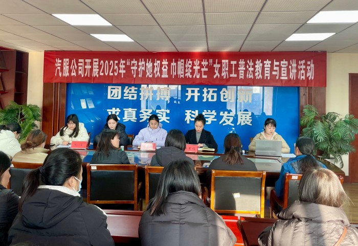 3月18日下午,汽服公司工會組織開展“守護她權益 巾幗綻光芒”女職工普法教育暨巾幗宣講活動,來自各事業(yè)部及部門30余名女職工齊聚一堂,共學法律知識、共話巾幗擔當。