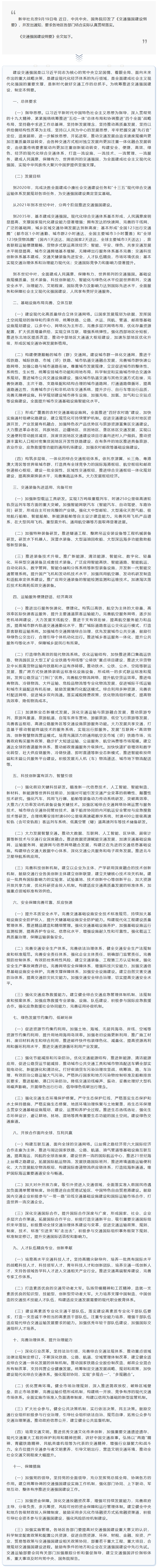 中共中央、國(guó)務(wù)院印發(fā)《交通強(qiáng)國(guó)建設(shè)綱要》