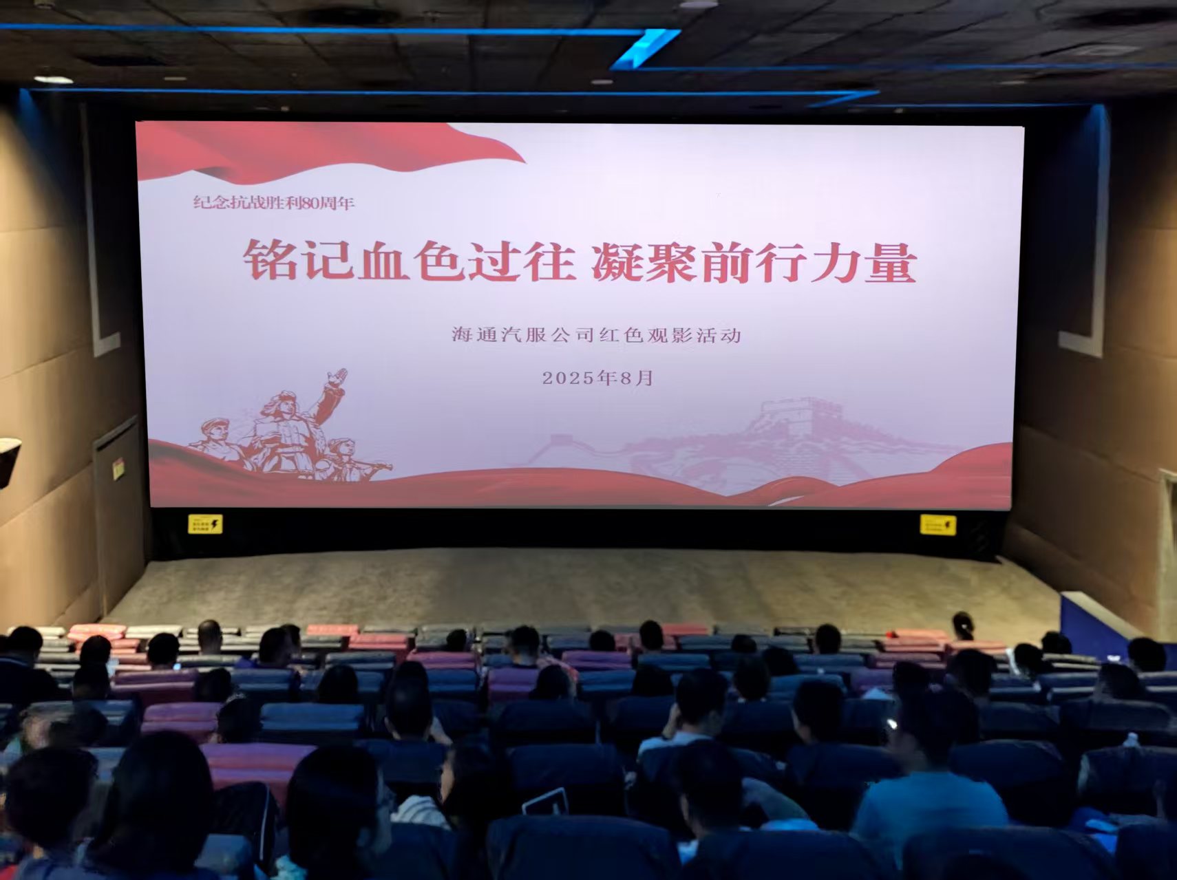 為紀念中國人民抗日戰(zhàn)爭暨世界反法西斯戰(zhàn)爭勝利80周年,深化愛國主義教育,8月15日,海通汽車服務(wù)公司組織開展“銘記血色過往、凝聚前行力量”主題紅色觀影活動,通過觀影引導干部職工重溫抗戰(zhàn)歷史,傳承紅色基因。