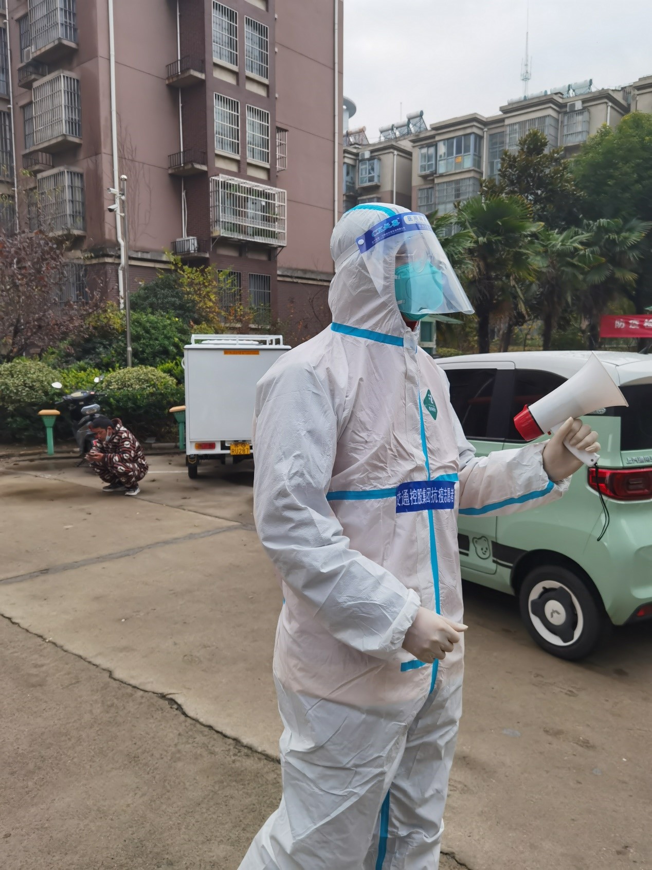 “請未做核酸的居民,抓緊下樓做核酸,謝謝配合我們的工作?!蔽锪骷瘓F(tuán)云濟(jì)公司的“95后”王迪正帶著擴音喇叭挨個樓棟進(jìn)行“掃樓”??箵粢咔橐堰M(jìn)入攻堅階段,務(wù)必保證核酸全覆蓋。于是王迪每天總是第一個到點位,顧不上吃早飯便開始“掃樓”,每天上下樓梯幾十趟,結(jié)束后又主動參與維持現(xiàn)場排隊秩序,提醒小區(qū)居民保持安全距離和戴好口罩,協(xié)助掃碼登記,等到一天繁忙的工作結(jié)束后汗水早已濕透防護(hù)服。